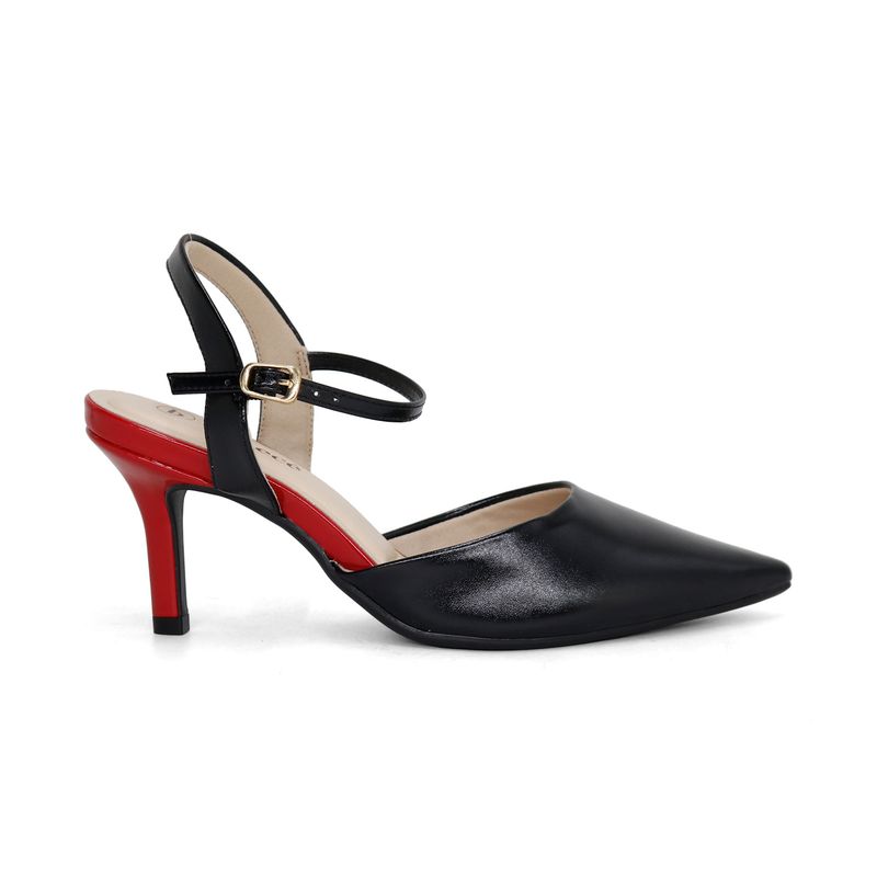 Los calzados Bebecé destacan por su diseño elegante y moderno, con punta fina y taco delgado que estiliza la figura. Cuentan con correa ajustable para mayor seguridad y comodidad. Están disponibles en dos estilos: clásico negro con taco rojo y opción animal print. Son ideales para ocasiones formales o looks casuales elegantes. Llegan en tallas 34 al 39.