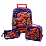 Incluye maleta amplia, lonchera además de cartuchera a juego, todos elaborados en material textil resistente. La maleta ofrece gran capacidad para cuadernos junto con libros. La lonchera permite llevar los alimentos de forma segura además de organizada. La cartuchera brinda el espacio ideal para lápices junto con colores.