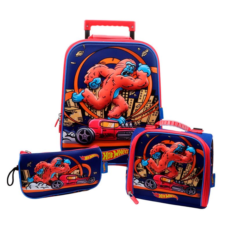 Espectacular combo Hot Wheels ideal para niños que disfrutan la aventura. Diseño llamativo en azul junto con rojo, acompañado de un estampado lleno de acción que destaca desde el primer día de clases.