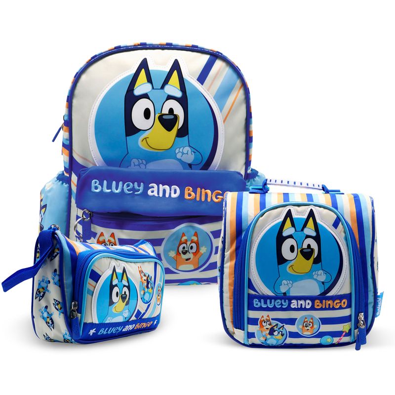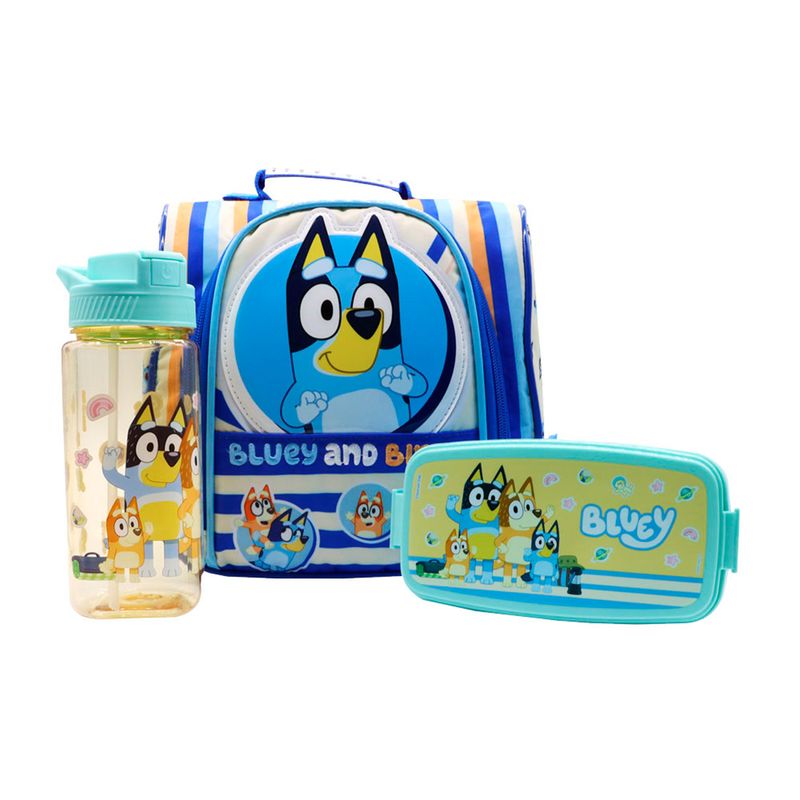Combo escolar infantil inspirado en Bluey junto a Bingo, ideal para los más pequeños del hogar. Incluye mochila, lonchera y cartuchera con un diseño colorido, alegre y atractivo. La lonchera incorpora accesorios de taper además de tomatodo, lo que la convierte en una opción práctica y completa para el día a día escolar. Cada artículo está elaborado con material resistente, fácil de limpiar, pensado para acompañar la rutina escolar con comodidad, orden y diversión.