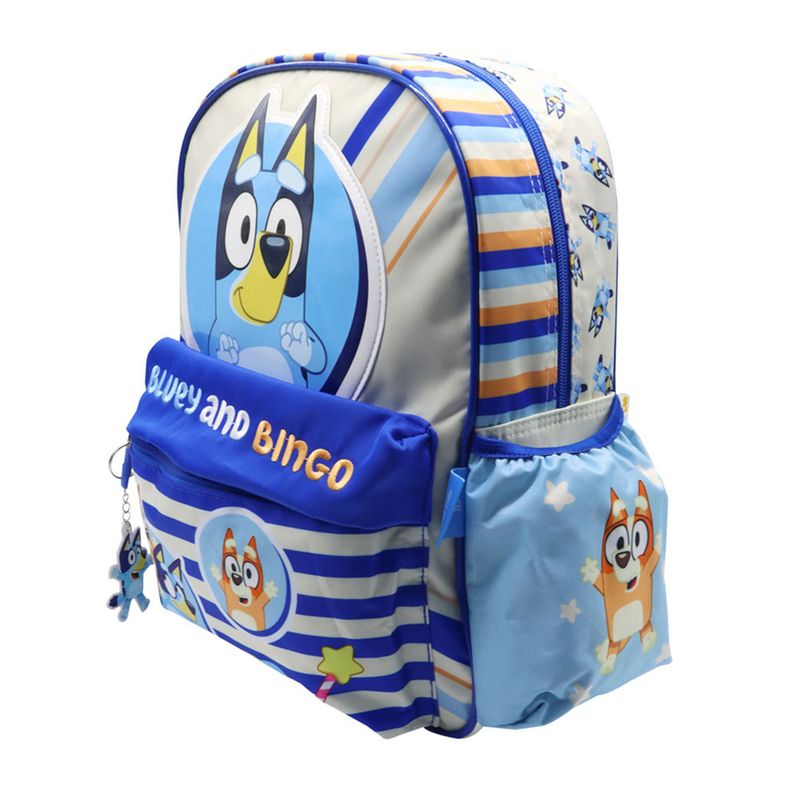 Mochila escolar con diseño encantador de Bluey junto a Bingo, perfecta para nivel inicial y primaria. Presenta un compartimento principal amplio que permite llevar cuadernos, libros y útiles escolares de forma organizada. Incorpora bolsillo frontal para acceso rápido, cierres firmes, asas acolchadas regulables que brindan mayor comodidad. Material durable con colores vivos que resaltan los personajes favoritos de los niños.