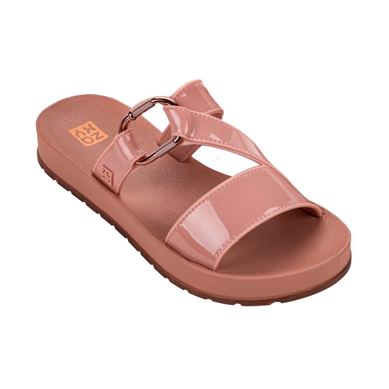 Sandalias Zaxy de diseño moderno y femenino. Capellada de PU con acabado brillante, brindando un look elegante y actual. Plantilla acolchada de PU, suave al tacto, ideal para el uso diario. Suela ligera que ofrece comodidad y estabilidad en cada paso. Detalle metálico decorativo que realza el estilo. Horma grande, perfecta para un calce cómodo.