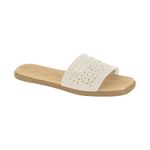 Sandalias planas para mujer marca Moleca. Diseño tipo slide con tira ancha calada que aporta un estilo moderno y fresco. Material suave al contacto con el pie. Plantilla cómoda y ligera para uso prolongado. Suela plana con buena estabilidad al caminar. Horma grande, calzan amplias, se recomienda considerar una talla menos. Ideales para looks casuales, uso diario, salidas y temporada de verano.