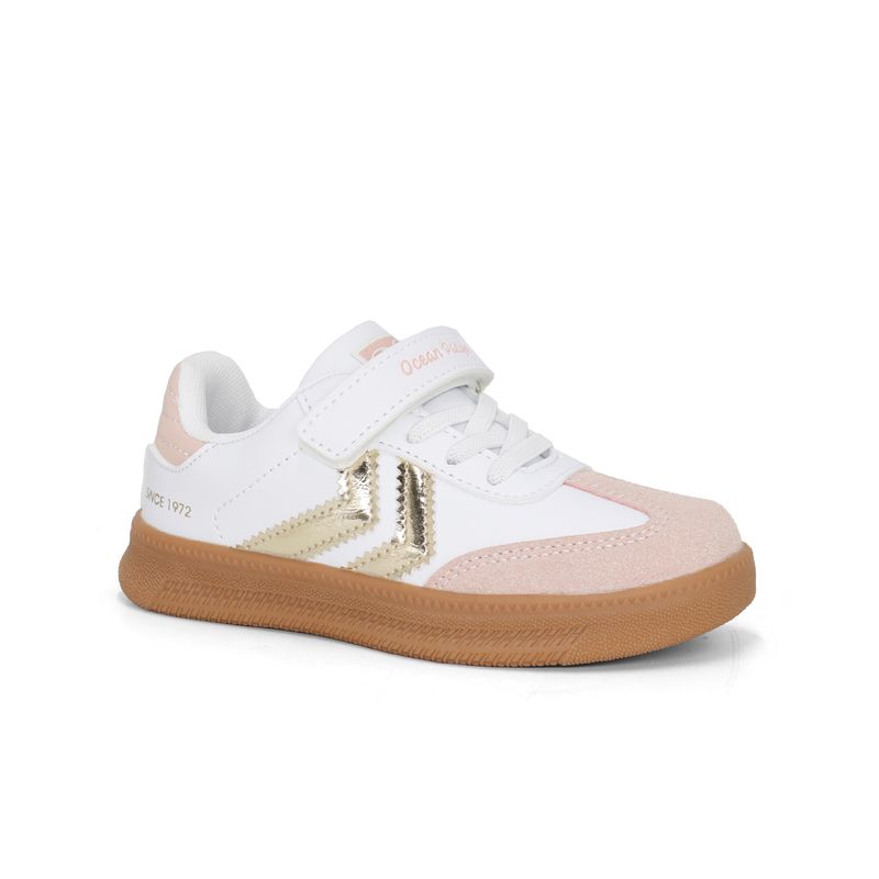 Las zapatillas Ocean Pacific Kids combinan estilo y comodidad para los más pequeños. Presentan un diseño moderno con tonos suaves Blanco Rosa , además de un detalle lateral que aporta un toque divertido y luminoso. Su suela gruesa y liviana brinda una excelente amortiguación, ideal para el uso diario. Cuentan con cierre de velcro y cordones elásticos que facilitan el calzado y aseguran un ajuste perfecto.