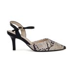 Los calzados Bebecé destacan por su diseño elegante y moderno, con punta fina y taco delgado que estiliza la figura. Cuentan con correa ajustable para mayor seguridad y comodidad. Están disponibles en dos estilos: clásico negro con taco rojo y opción animal print. Son ideales para ocasiones formales o looks casuales elegantes. Llegan en tallas 34 al 39.