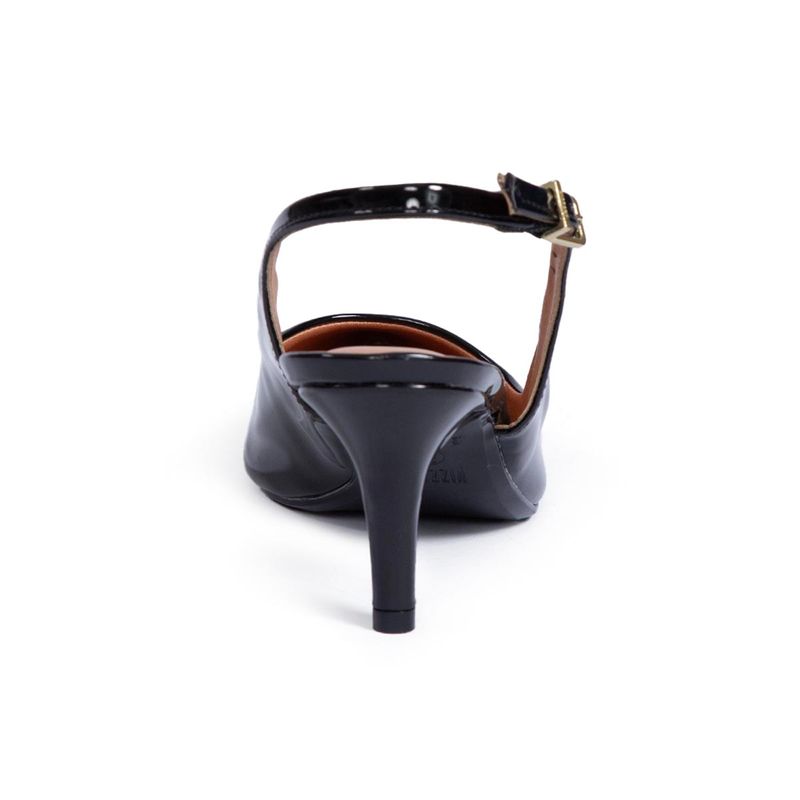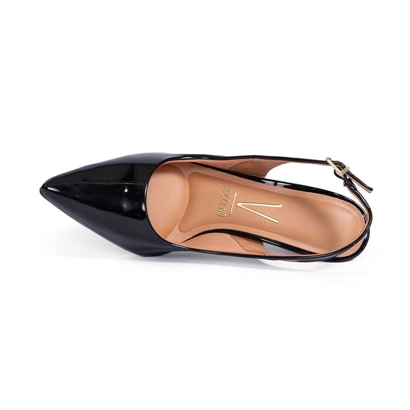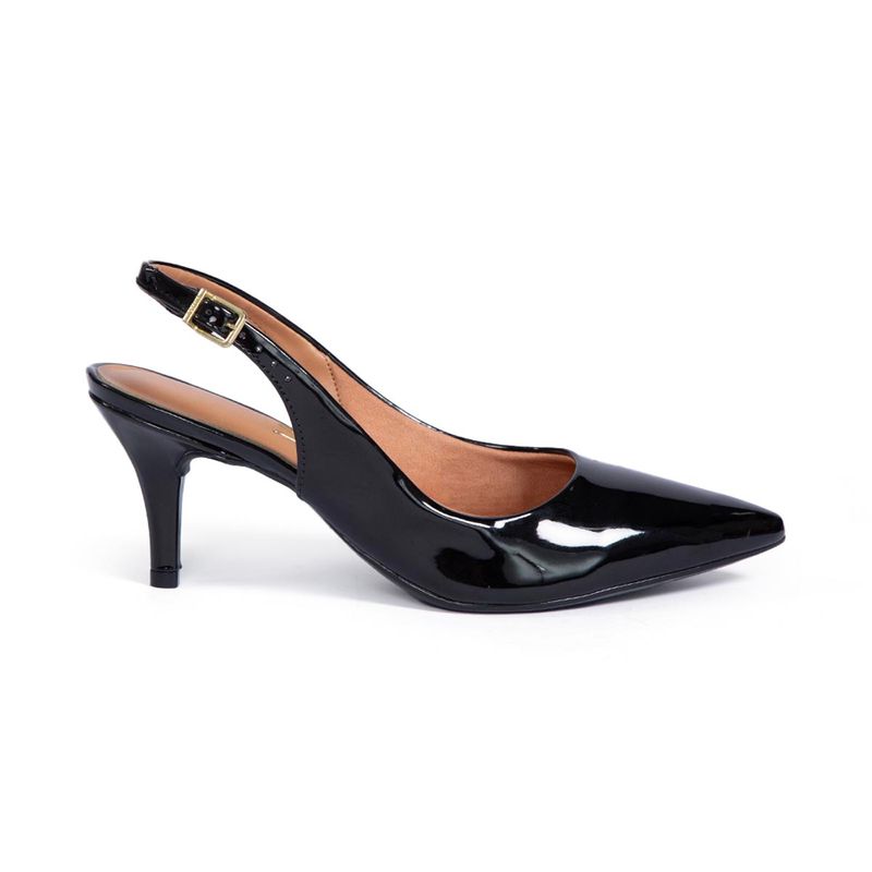 Zapatos Vizzano tipo slingback que combinan elegancia y tendencia con un diseño sofisticado de procedencia brasileña, elaborados en material charol (verniz) de acabado brillante que realza cualquier outfit con un toque moderno, interior confortable con planta de PU que brinda suavidad al caminar, horma grande que se adapta mejor al pie ofreciendo mayor comodidad durante largas horas de uso, taco fino de 7 cm que estiliza la figura y aporta altura ideal sin perder estabilidad, diseño con correa posterior ajustable que asegura mejor sujeción, modelo versátil en colores negro y beige perfecto para looks formales, oficina o eventos especiales, calzado pensado para mujeres que buscan presencia, estilo y confort en cada paso