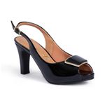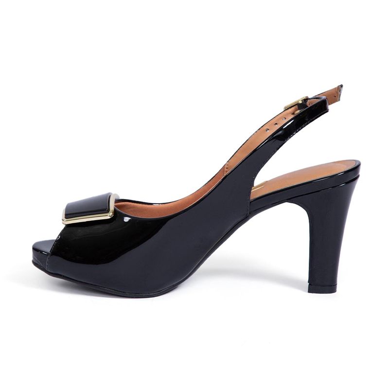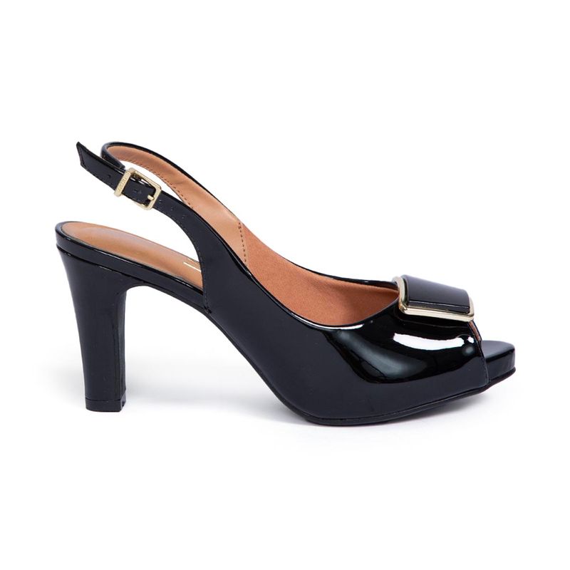 Sandalias Vizzano tipo slingback que combinan elegancia y tendencia en un diseño moderno y sofisticado, calzado de procedencia brasileña elaborado en material charol (verniz) de acabado brillante que aporta un look refinado y llamativo, interior con plantilla de PU que brinda suavidad y confort en cada paso, taco de 7 cm de altura ideal para estilizar la figura sin perder estabilidad, horma grande que se adapta mejor al pie ofreciendo mayor comodidad durante su uso, diseño de punta abierta que aporta frescura y un estilo más femenino, correa posterior con hebilla ajustable que asegura una mejor sujeción, detalle frontal con aplicación metálica que realza el diseño con un toque elegante y moderno, disponibles en colores negro y beige perfectos para complementar outfits de oficina, eventos o salidas especiales, modelo pensado para mujeres que buscan lucir sofisticadas, seguras y cómodas en cada ocasión